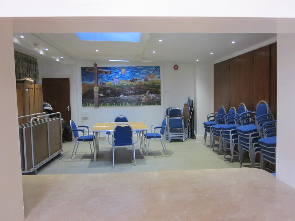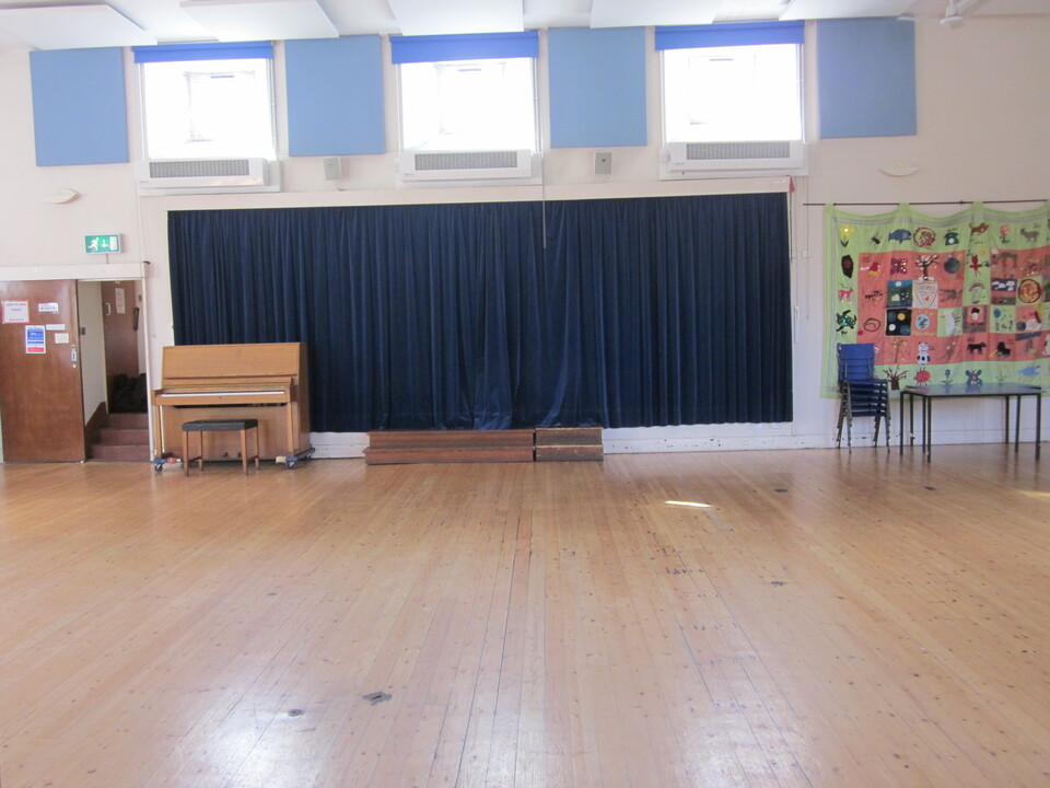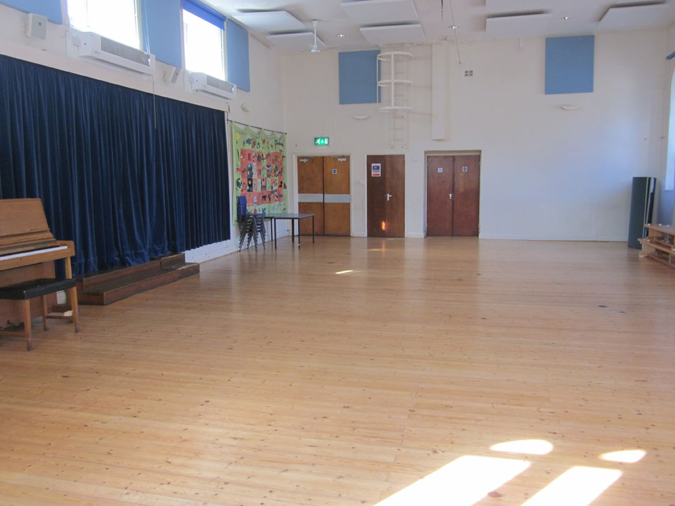 | Additional equipment or facilities | There are six car parking spaces outside the hall and a public Pay-and-Display car park opposite. There is a ramp up to the front entrance of the hall and level access to the rear. However there are steps between the main hall and kitchen. One of the two meeting rooms occupies the stage area. |